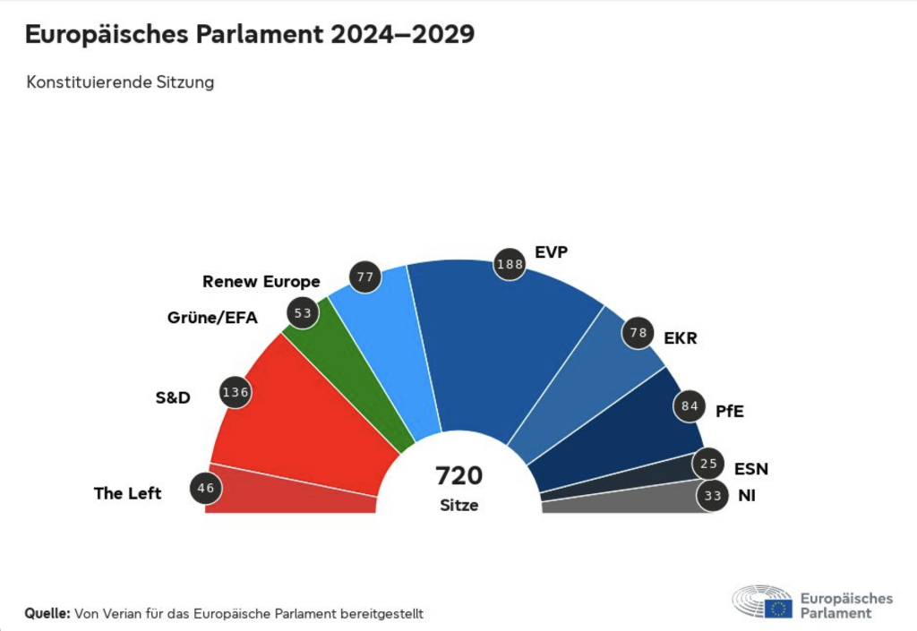 Obwohl die politische Mitte, bestehend aus den Fraktionen der konservativen EVP, der sozialdemokratischen S&D und des liberalen Renew auch fünf weitere Jahre eine klare Mehrheit im Europaparlament bilden können, kann sich der »rechte Rand« aus nationalistischen, populistischen und rechtsradikalen Parteien bei diesen Wahlen mit einem deutlichen Zugewinn an Sitzen klar als Gewinner sehen. Bei einer schwachen Wahlbeteiligung von weniger als 52% entschieden sich die Franzosen 2024 gegen ihre Regierungspartei; Macron und seine Bewegung gingen als Verlierer aus dieser Wahl. Es scheint ein klarer Wunsch der Bevölkerung nach radikaler Veränderung, aber auch ein deutliches Zeichen gegen die Europäische Union.