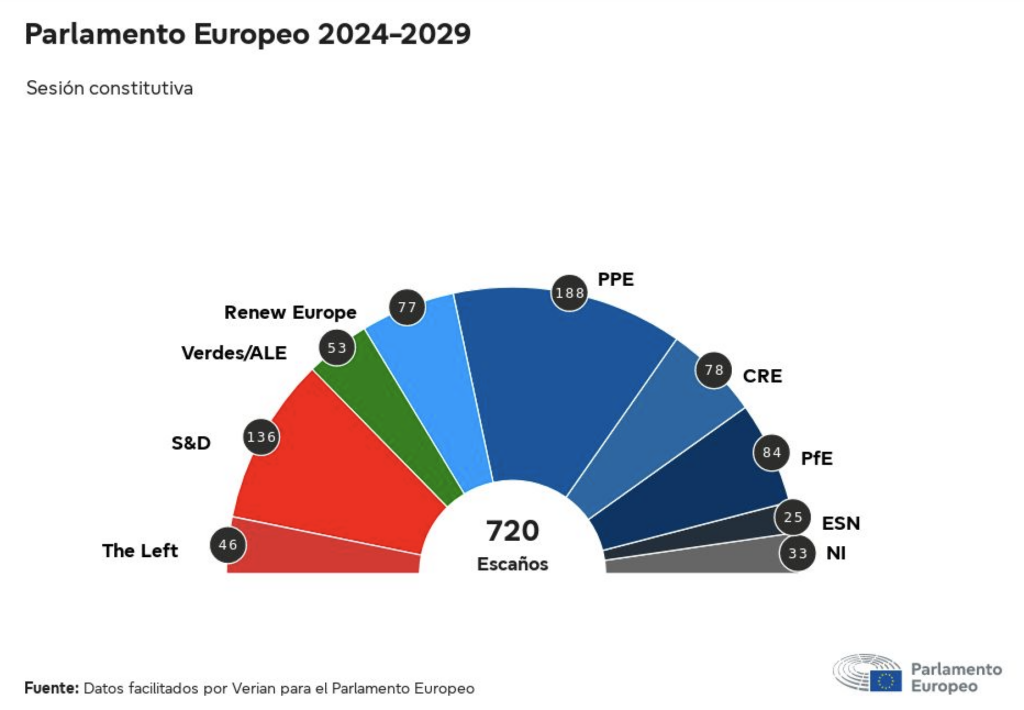 El RN forma parte de la nueva facción Patriotas por Europa (PfE), creada el 8 de julio de 2024, en torno al partido Fidesz-Unión Cívica Húngara de Viktor Orbán. Esta facción está compuesta por partidos euroescépticos, nacionalistas y de extrema derecha, y está representada en el Parlamento Europeo bajo la conducción del presidente del RN, Jordan Bardella. Sigue las directrices de su facción anterior, Identidad y Democracia (ID), que en mayo de 2024 dejó fuera a los nueve miembros del Alternativa para Alemania (AfD). Al final de la pasada legislatura, esta representaba la segunda fracción más pequeña, con 49 diputados. En la legislatura actual, la recién formada facción PfE cuenta con 84 diputados, posicionándose como la tercera fuerza más fuerte en el Parlamento Europeo. Aunque el centro político, conformado por las facciones del Partido Popular Europeo (PPE), los socialdemócratas de S&D y los liberales de Renew, puede continuar con una clara mayoría en el Parlamento Europeo por cinco años más, el »a la derecha« de partidos nacionalistas, populistas y de extrema derecha ha obtenido un claro incremento de bancas en estas elecciones, consolidándose como el gran ganador. Con una débil participación electoral, de menos del 52 %, los franceses se decidieron en 2024 en contra del partido de gobierno; Macron y su movimiento resultaron perdedores en esta elección. Parece ser un deseo claro de la población por un cambio radical, así como una señal evidente en contra de la Unión Europea.