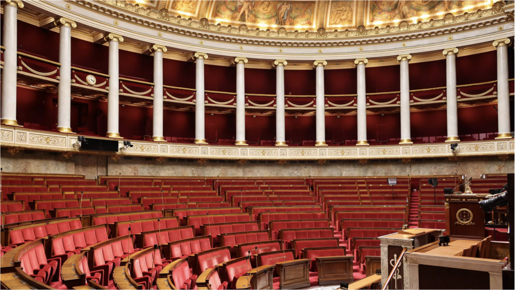 El Hémicycle, la sala plenaria de la Asamblea Nacional francesa, está compuesto por 577 escaños. Tras las elecciones, han surgido tres bloques casi del mismo tamaño: 193 bloques para la alianza socialdemócrata de izquierda NFP, 166 escaños para el bloque liberal-centrista de Macron, Ensemble, junto con sus aliados MoDem y Horizons, y 142 escaños para el ala de extrema derecha, compuesta por el RN y el pequeño partido À droite (A la derecha). No existe una mayoría absoluta para el bloque presidencial, ni una cohabitación en el sentido clásico, ya que la oposición no ha alcanzado la cifra mínima de 289 escaños y, por lo tanto, no tiene una mayoría absoluta. Sin embargo, tampoco se puede hablar de una coalición al estilo alemán. Los distintos grupos, debido a los resultados electorales, tienen la capacidad de bloquearse mutuamente en el parlamento, lo cual podría llevar a un estancamiento interno en cada tema controvertido. Para posibilitar un trabajo gubernamental efectivo, el principal objetivo es evitar una total obstrucción mediante una alianza entre el RN y el NFP.