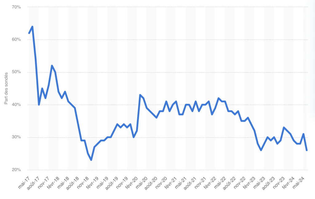 El resultado se refleja en la constante caída de la popularidad del presidente y en la disminución de la participación electoral. Un aumento en la popularidad de Macron parece si no vinculado a crisis extremas, cuando se demuestra una buena gestión, por ejemplo, durante la pandemia de Covid-19 o en los actuales conflictos bélicos, a través de un liderazgo sólido.